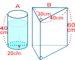 先求出在A容器中水的體積,然後再倒入B容器中,假設水深為y公分,利用"怎樣解題"的技巧,即可求出水的深度。 |