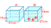 ![]() 玻璃容器厚度為0.5cm,注水至15cm處(如圖A),然後置入三顆大小相同的鐵球,使水位上升至18cm處(如圖B),請問每一個鐵球的體積是多少cm3? |