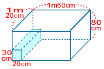 ![]() 上圖是一個水槽,請問: 1.這個水槽的容量是多少升? 2.如果每分鐘注水9升,當水深為30cm時,是幾分鐘後? |